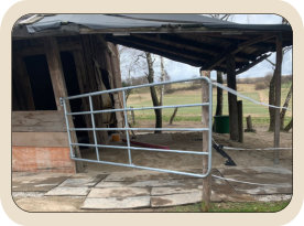Mittlerweile sind Lamellenvorhänge und Heunetze montiert. Auch eine kleine Futter- und Sattelkammer